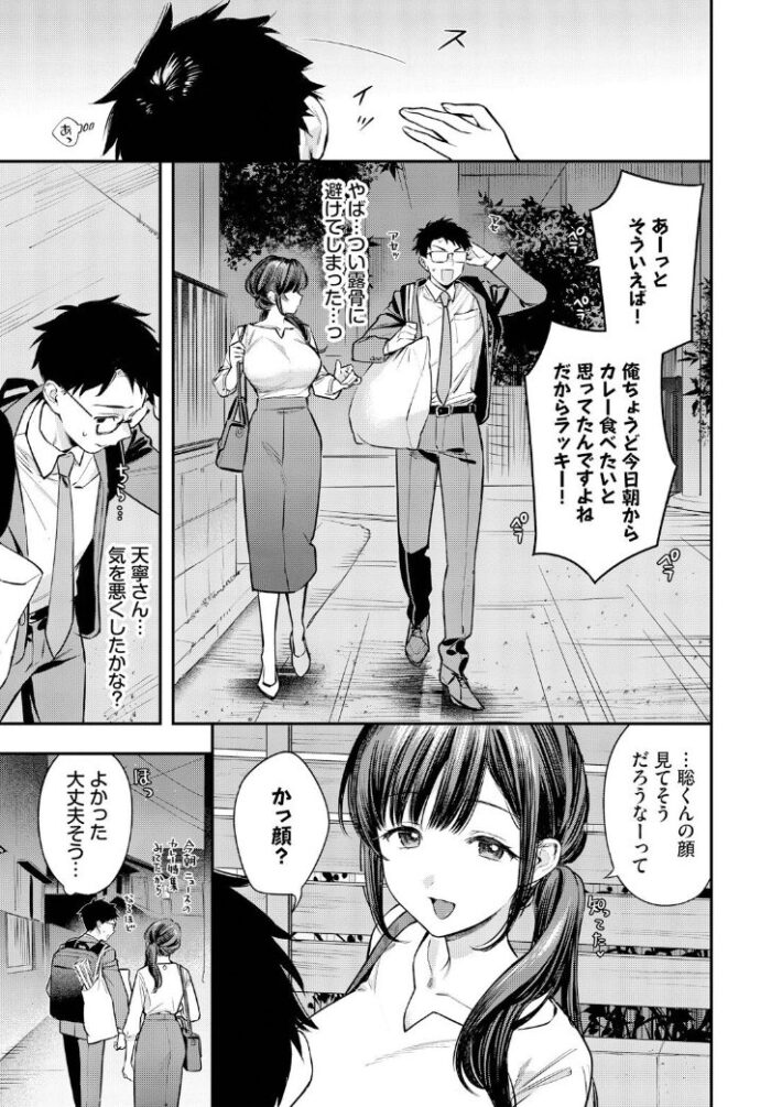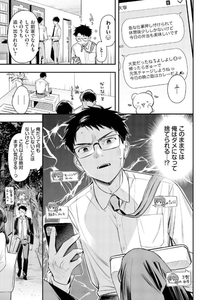 家庭的な彼女・天寧と同棲している聡。ご飯やお弁当を毎日作ってくれてお風呂で背中まで流してくれる彼女に聡は甘え切っていた。
